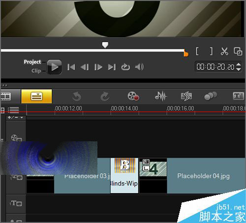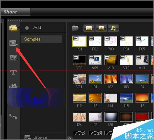 5、安装完成之后,在软件的界面中,如果你把模板的界面关闭后,就可以打开你所下载的模板。双击它的项目文件就可以把它导入到会声会影的轨道中。