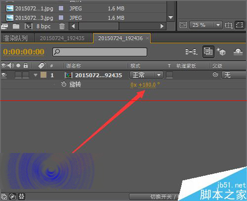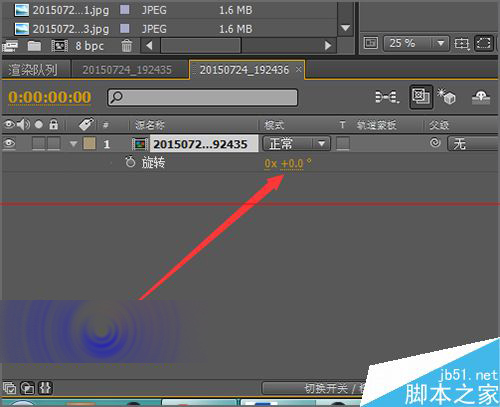 8、把这个合成新建好之后,我们把向右的那张相片拉入到这个合成中来,可以看到在这个合成中,它的右边是留有空间的。我们选中相片的图层。然后同样的英文的状态下点击键盘上的r 键进行旋转。把它的旋转角度设置为-90。设置好后,就可以看到相片也恢复了正常。