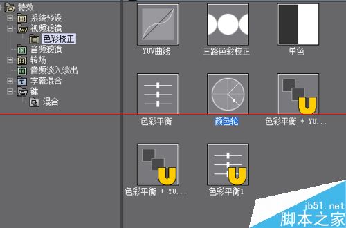 1、edius自带的色彩控制特效主要有五个,分别是YUV曲线、三路色彩校正、单色、色彩平衡和颜色轮。其中单色不经常使用,此处重点讲其他四个色彩校正特效。
