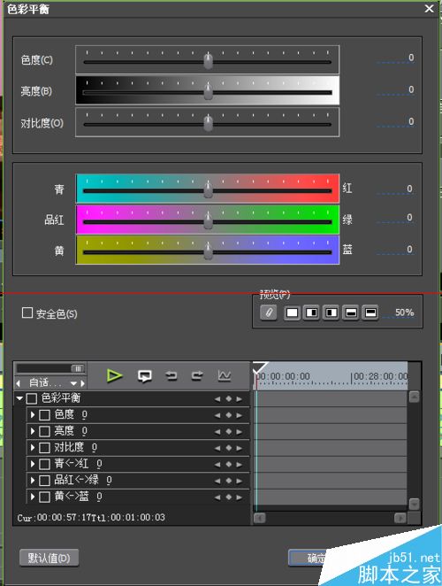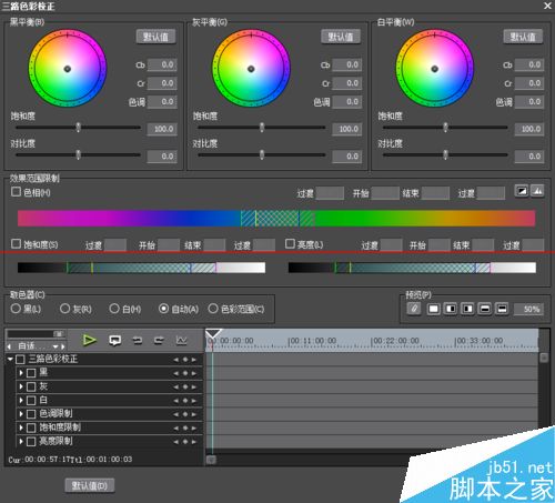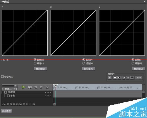 2、YUV曲线。YUV曲线通常用来调节灰色画面,其中Y曲线调节画面的明暗,U曲线调节蓝色和黄色的平衡,V去向调节红色与绿色的平衡。下方的时间线窗口可以对视频画面颜色插入关键帧进行控制。