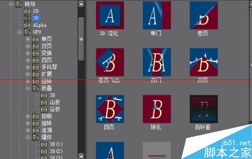 4、转场/音频淡入淡出,这里的特效用于视频转场和声音转场,转场就是视频画面的切换,声音的切换。此处的特效效果较多,需要逐一学习了解,只有掌握了此处的特效才能作出精彩的视频。