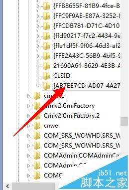 3、进入注册表界面,定位到HKEY_CLASSES_ROOT\CLSID\{AB7EE7CD-AD07-4A27-B986-C7D5A31C8098}项下