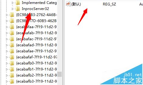 4、打开该项找到InprocServer32,点击选中右侧的默认