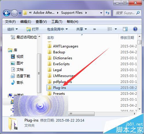 2、接着在弹出的界面中,找到插件的安装文件夹Plug-ins。当我们双击打开这个文件夹后,就可以在这个插件中看到Element.aex的插件。
