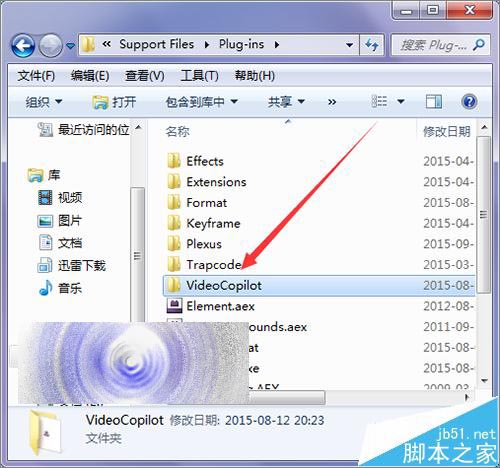 3、当然如果它提示安装多个插件的话,它肯定还在其它的文件夹中有这个插件。所以可以把Plug-ins中的每一个文件夹都打开看一下。当然也可以直接在它上方的地址栏中输入这个安装多的插件。这里打开VideoCoilot插件文件夹。