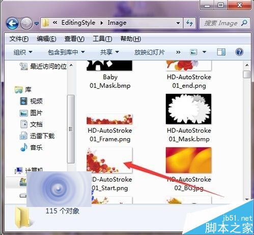 4、打开Image的文件夹后,在它打开的界面中可以看到这里有很多的图片以及遮罩素材。它里面的图片格式一般也都是png的。