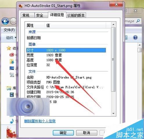 6、在它打开的属性的界面中,当我们点击下它的详细信息后,就可以看到它的图像尺寸大小为1920*1080的,它是一张高清的素材,正是需要的。