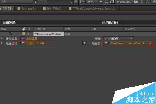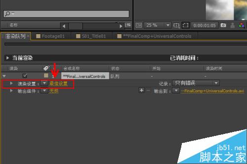 2、再软件底端出现渲染序列面板,找到渲染设置,点击后面的黄字“最佳设置”