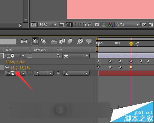 4、接下来是第四个关键帧的调整。把时间线移动到第四个位置的关键帧上。再把心形的缩放值移动它的数值进行一个稍微的放大。这一次它的缩放大小设置为85%。新建缩放的关键帧后进行下一步的缩放操作。