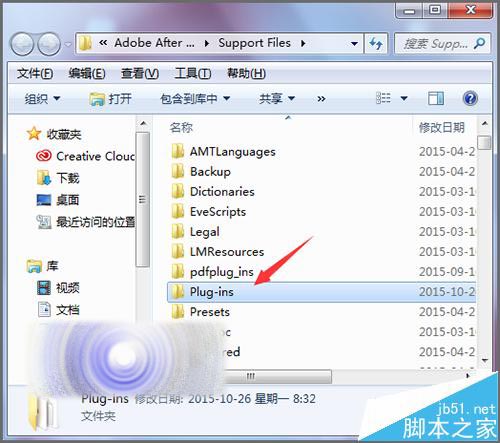 5、在打开的界面中,在列表中找到Plug-ins的文件夹。这个文件夹就是安装插件的常用文件夹。如果想要找到电脑中安装的有哪些插件的话,也可以在这个文件夹中进行查找。