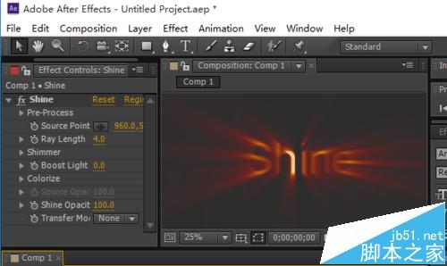 6、最后安装完成,打开AE,在特效里面可以看到 Shine了。