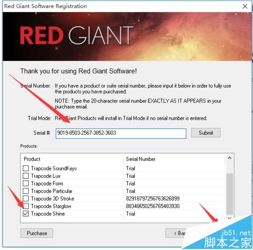 2、下载后打开安装包,开始安装,选择TrapCode Shine,输入注册码,选择下一步。