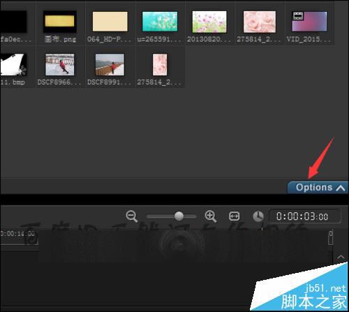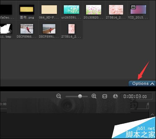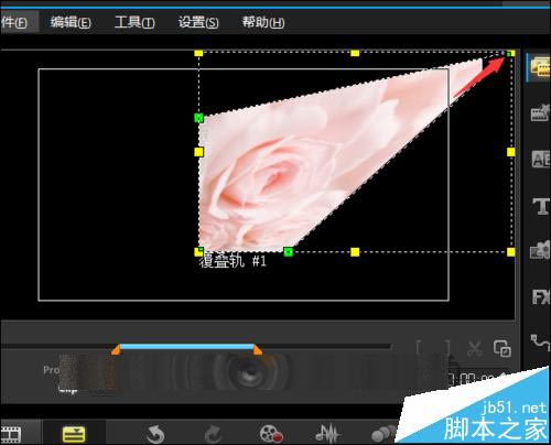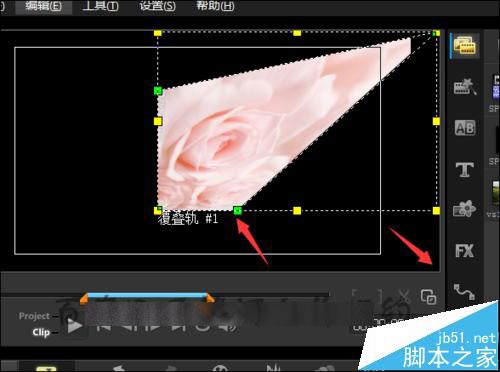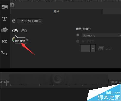 13、在覆叠轨上面选中图片。点击右边的Options。接着在弹出的界面中选择编辑。点击编辑之后,就可以看到在编辑的界面中有一个向左和向右的旋转符号。点击其中的向右或向左旋转。就可以让图片正常的显示。