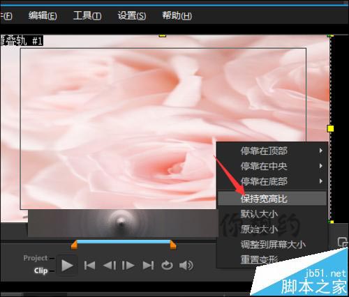 5、当点击调整到屏幕大小后,可以看到现在的素材还是有些变形的。接着在图片上面点击右键,在列表中选择保持宽高比。进行了这一步的操作就可以看到现在的图片恢复到正常。