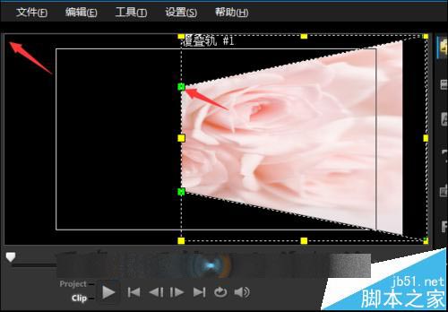 9、把它的位置固定在预览窗口的右上角。接下来把右下角的这个绿色的点击也把它移动到窗口的右下角。在移动点的时候可以准确一些。和上面的线大致一致.