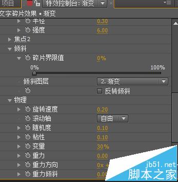 5、运用碎片特效制作碎片效果。执行菜单栏中的特效模拟碎片命令,在对其进行参数修改。