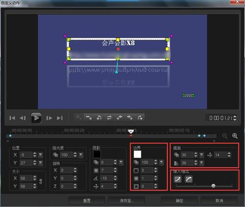 2、在弹出的对话框中,可以设置字幕的大小、位置、阻光度等数值,调整数值,添加关键帧,就能设置字体动画了,制作会声会影特效字幕了。