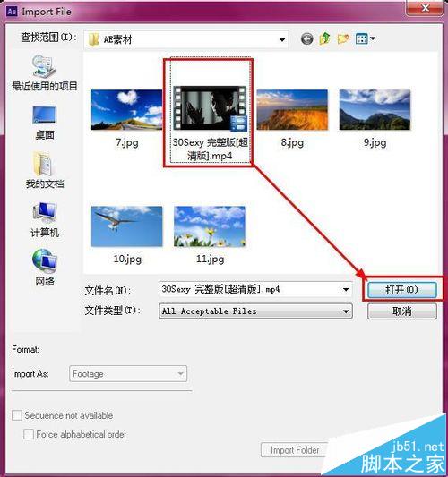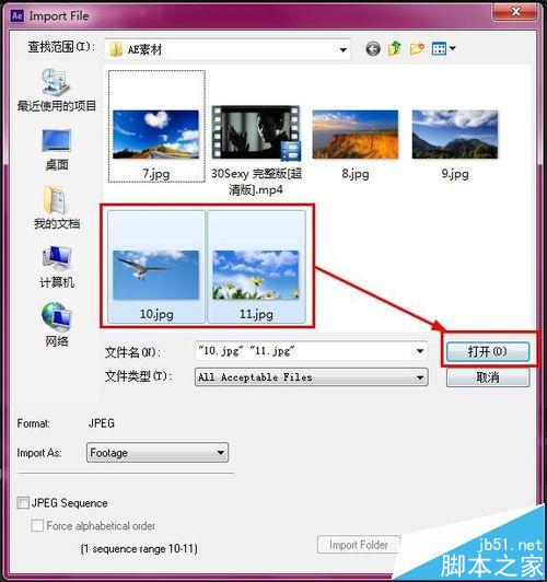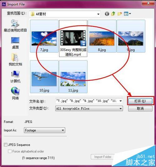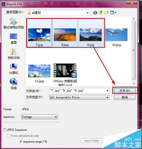 4、导入的素材文件可以是单张的图片,视频文件,还可以是序列文件,如果是导入序列文件,点击窗口中的“导入序列”在前面打上勾便可完成!如图所示: