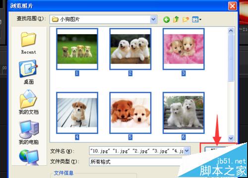 3、弹出一个窗口,找到你下载的小狗图片,全部选中,单击打开,如图所示。