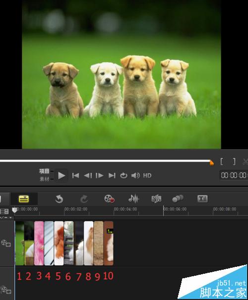 5、这时,十张图片就都在视频轨上了,我们还要对这十张图片做进一步处理,如图所示。