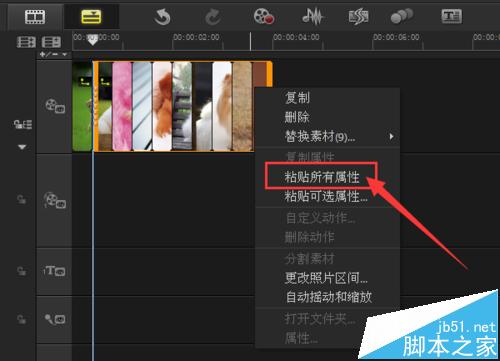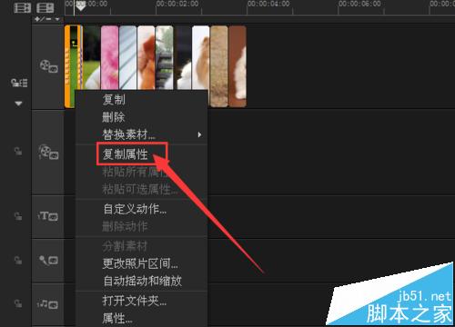 7、然后点击第一张图片,鼠标右键,在弹出的菜单中选择复制属性,然后再点击第二张图片,再鼠标右键,在弹出的菜单中选择粘贴所有属性,如图所示。