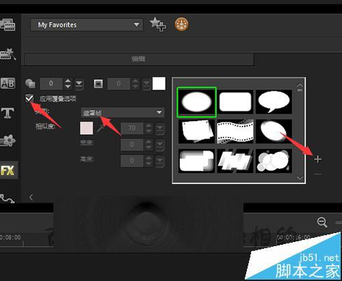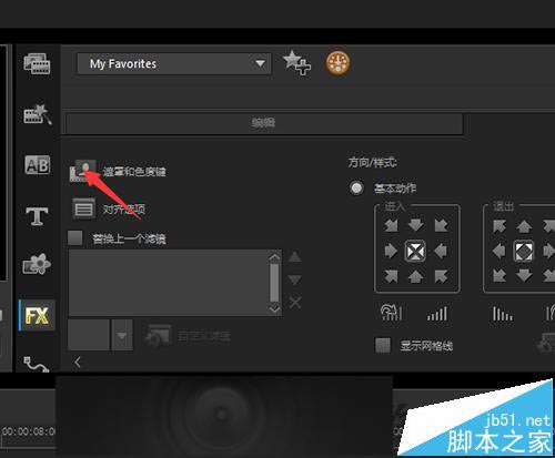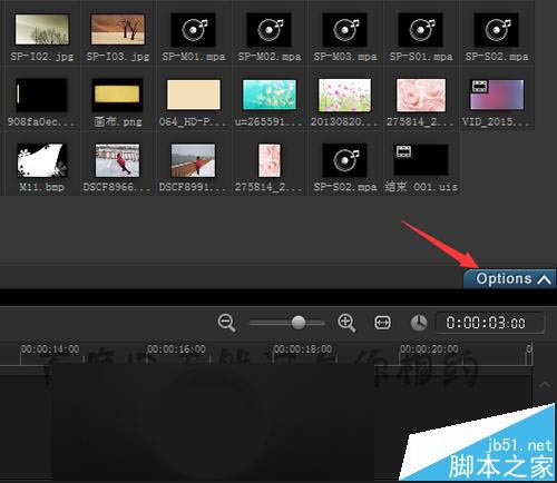3、选择中素材后,这时就会看到在时间线面板的右边有一个Options的选项。点击这个选项。接着在弹出的界面中选择遮罩和色度键。