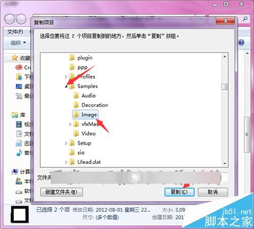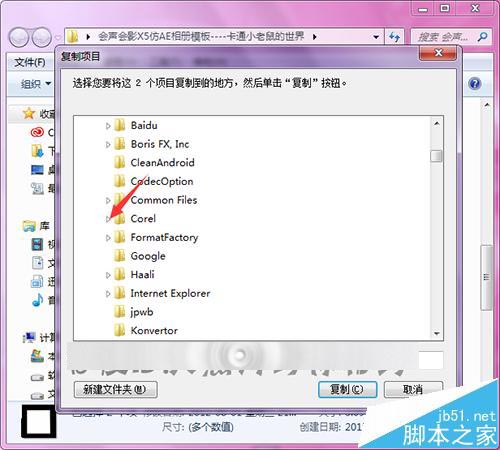 11、接着在列表中找到Corel的文件夹并展开按钮。在列表中找到想要添加遮罩文件夹的软件版本,这里添加会8的版本中。展开8的列表。找到Samples的文件夹,然后在展开的列表中找到Image的文件夹半点击一下。在界面中选择复制。