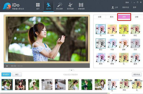 第三步:点击【滤镜】选择一种滤镜模式来美化视频。