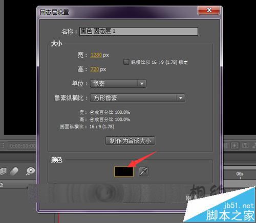 2、合成新建好后,再面板中再新建一个固定层。在面板的空白处点击新建--固态层。在弹出的固态层中默认的是上次使用过的颜色。这里可以在它的的颜色上面更改为默认的黑色。