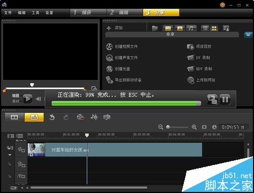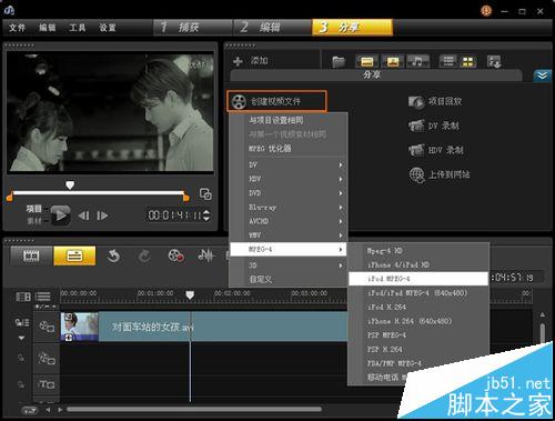 4、编辑好了,可以导出视频了。选择“分享”-“创建视频文件”,输出的视频选项也有很多,可按个人需求来选择。