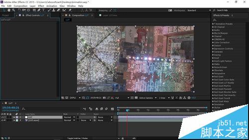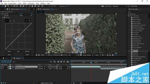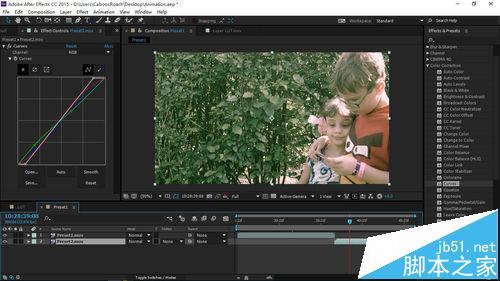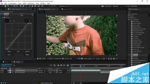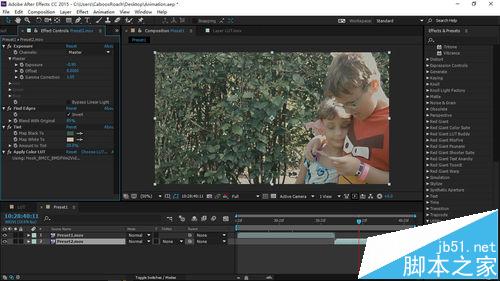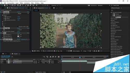 4、到第二段视频,在“效果和预设(Effects & Presets)"面板依次展开动画预设(Animation Presets) -> 用户预设(User Presets)为视频添加刚刚保留的预设,看看调色前后的对比。