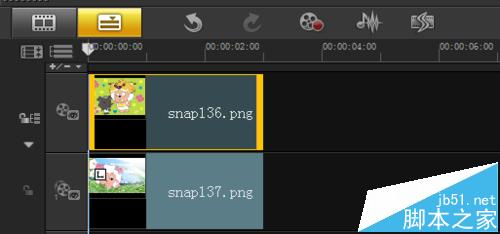 1、进入视频制作软件会声会影,在会声会影中打开两张图片素材,分别插入“视频轨”和“覆叠轨”;