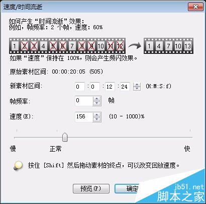 2、如果选择“变速”,在弹出的对话框中,拉动滑块向快的方向即右侧滑动,然后自己把握好速度即可。