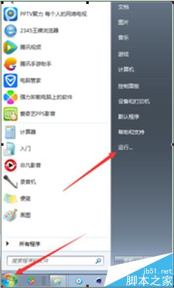 1、打开“开始”菜单中的“运行”