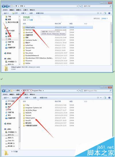 3、打开文档文件夹,将VideoCopilot文件夹剪切粘贴到非系统盘(这一步需要关闭AE软件,建议粘贴到一个可用内存较大的盘,这里我用D盘示范)