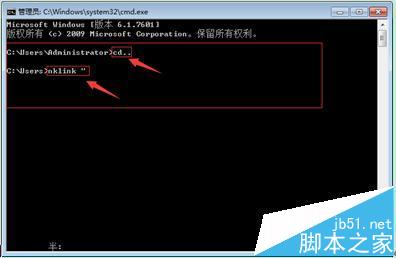 4、回到cmd的命令窗口输入“cd..”回车输入“mklink”,然后空格输入引号"(是英文输入状态)