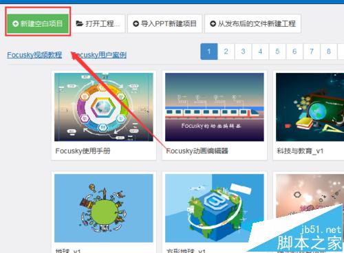 1、对于我们的用户来说,首先我们打开我们的focusky动画演示大师,然后我们可以在主界面看到有一个新建空白项目。这里我们就点击这个选项。如果我们是导入PPT然后经行修改的话,那么就点击导入PPT文件吧。