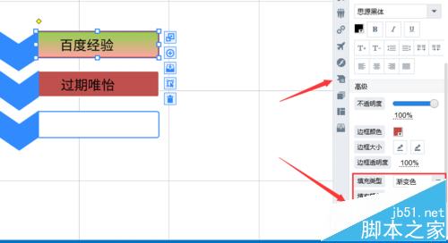 8、如果对于我们来说。样式的背景颜色太单一了,这样导致我们的艺术图形没有多样性,所以这里我们可以选择设置渐变色,这里我们下拉选择下面的高级,这里我们可以看到填充类型选择渐变色,然后颜色搭配根据自己设置就可以了。