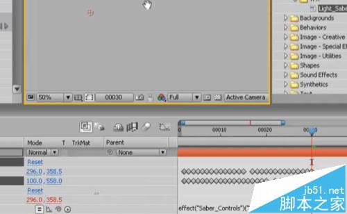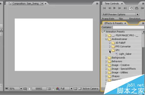 2、打开快速搜索窗口 找到VFX预设,将这个“light-saber”拖到固态层上