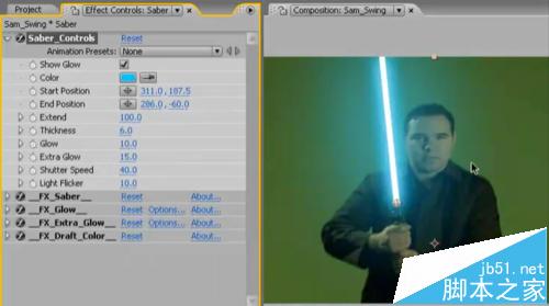 3、在特效窗口中只调节”saber-controls“特效