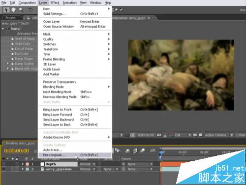 4、关掉“景深”图层的眼睛 并预合成
