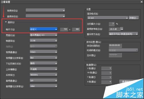 3、如果提示不能转换,就说明你现在所选的文件格式不支持你自定义的分辨率。此外,你还可以在未开始剪辑视频的时候就自定义视频尺寸:新建工程的时候,勾上左下角的自定义,之后在弹出的窗口里面点开高级,在帧尺寸那里选择自定义,点击确定,就可以了。