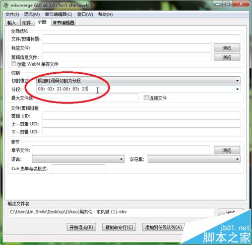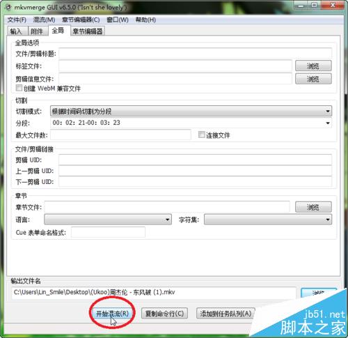 5、根据我们的需要输入相应的时间码后,我们点击右下角的“浏览”,选择好保存目录与名字后,最后点击“开始混流”就行了: