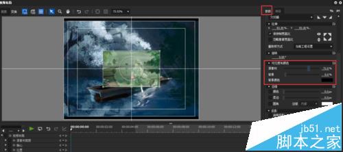 3、进入视频编辑页面后,我们在右边参数菜单那会看到可见度和颜色属性,我们就可以调整这里来实现调整图片的可见度。源素材和背景你们动手调调就能区分开,而下面的背景颜色就是你滑动滑块逐渐加深背景图片的颜色就会趋向你选择的颜色。具体操作如图所示: