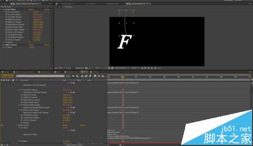 8、我们想让绳子也懂,看起来更真实,就需要添加Bezier Warp效果了,并为Bezier Warp的四个参数添加表达式: