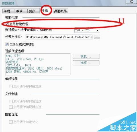 大大提升了编辑操作速度。也就是说,会声会影智能代理只是加快了编辑过程,而对最后的输出质量不会有影响。如果你的机器配置足够高,可以不启用该项!有一点必须谨记:安装卡拉字幕精灵的用户,必须将智能代理不选中,否则导入卡拉字幕精灵的KAJ项目文件或AVI虚拟字幕或出错!