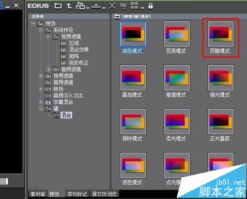 7、除了上述模式之外,edius还有很多其他的混合模式可以选择。大家可以逐个尝试。体会其中的不同。