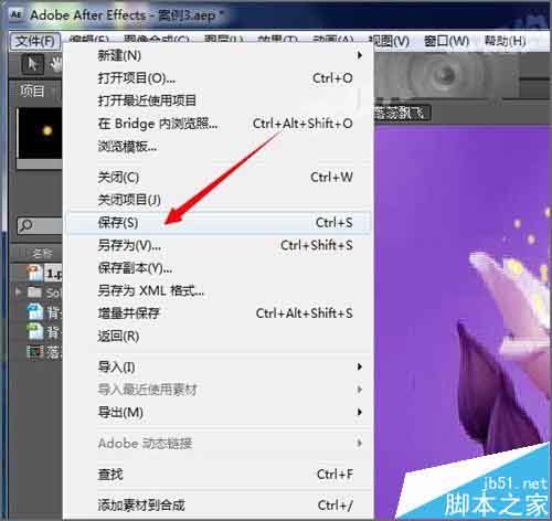 8、这时候我们点击文件下面的保存。先把工程文件进行一下保存。这样下次再打开的时候就是现在的样子。