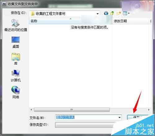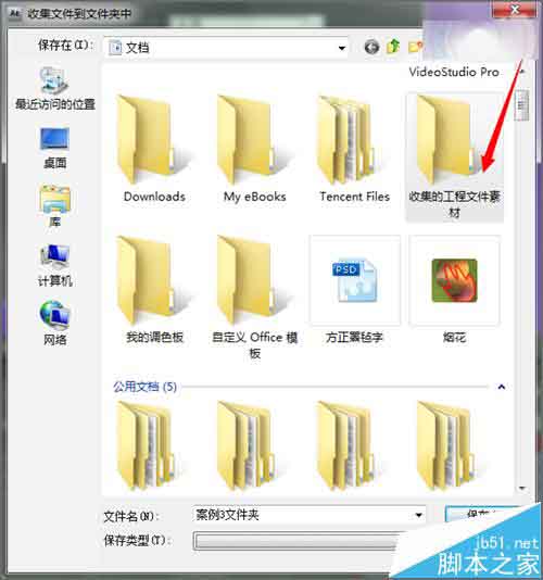 11、接着在弹出的对话框中我们可以选择一个位置,也可以新建一个文件夹把它命名一下,方便以后查看,这里就把它的文件夹命名为收集的工程文件素材。