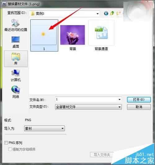 4、点击之后,找到素材所在的位置,直接点击素材进行打开。